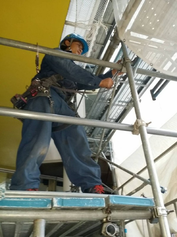 改修工事に伴う仮設足場の設置を行いました。